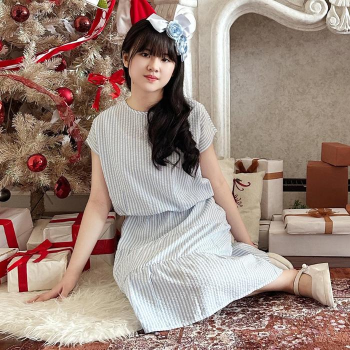 Queenkids - Jihyo Dress - Midi Dress Anak Perempuan - Dress Natal Anak Perempuan - Biru, 6