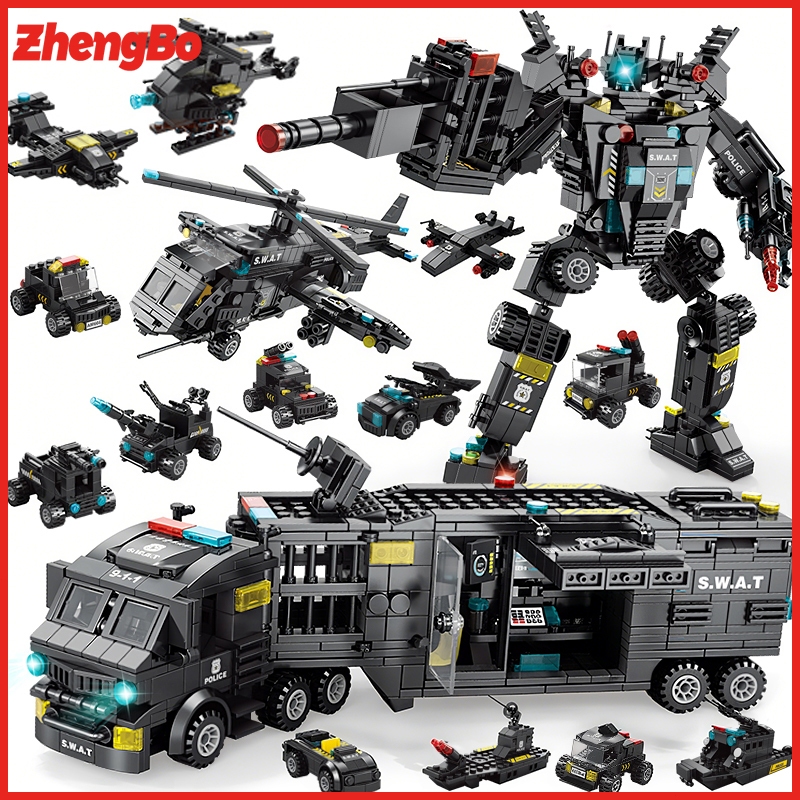 ZhengBo Mainan 700Pcs Robot Polisi SWAT/Army/Warship Blocks Edukasi Mainan Anak Laki-laki