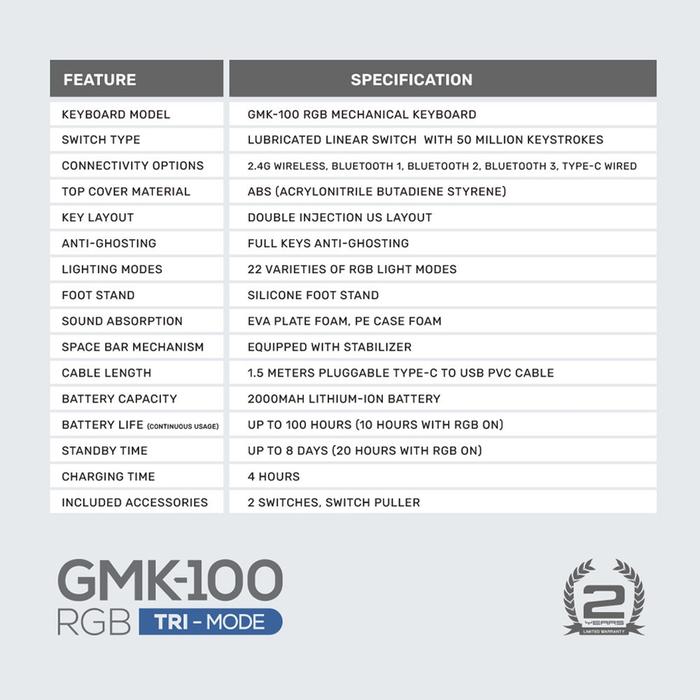 Keyboard Gaming Mechanical Armaggeddon Gmk100 Wireless Triple Mode Bluetooth Rgb 63 Keys Ultra Compact 60 PERSEN - Keyboard Gm