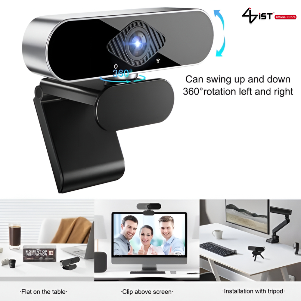 IST Webcam 4K Ultra HD — Kamera USB untuk Laptop/PC dengan Microphone Built-in Mount Rotasi 360° & Mic HD