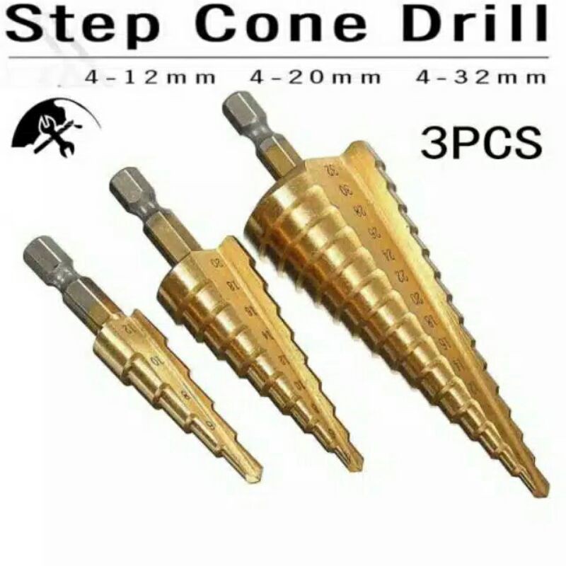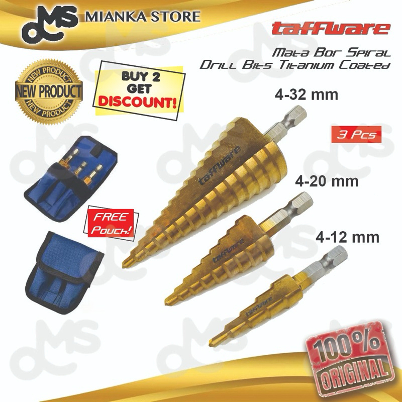Mata Bor Spiral Hss Steel Titanium Coated Set 3Pcs