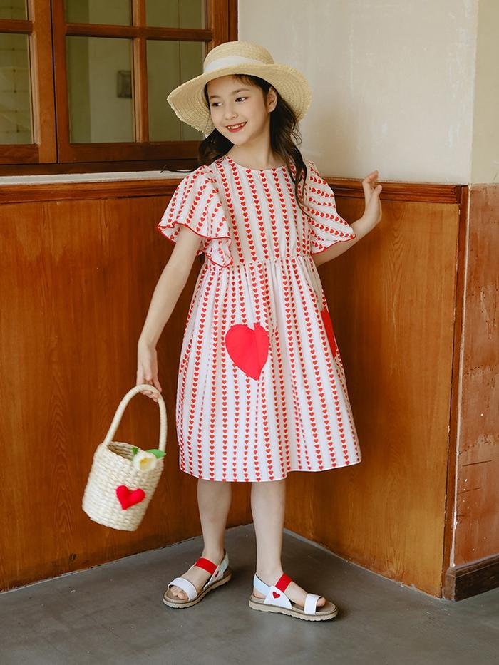 Dress Belvina By Lisyagirl Umur 4-13 Tahun / Dres Anak Cewe Holiday Family Bahan Ringan Tidak Panas - Merah Garis, 120