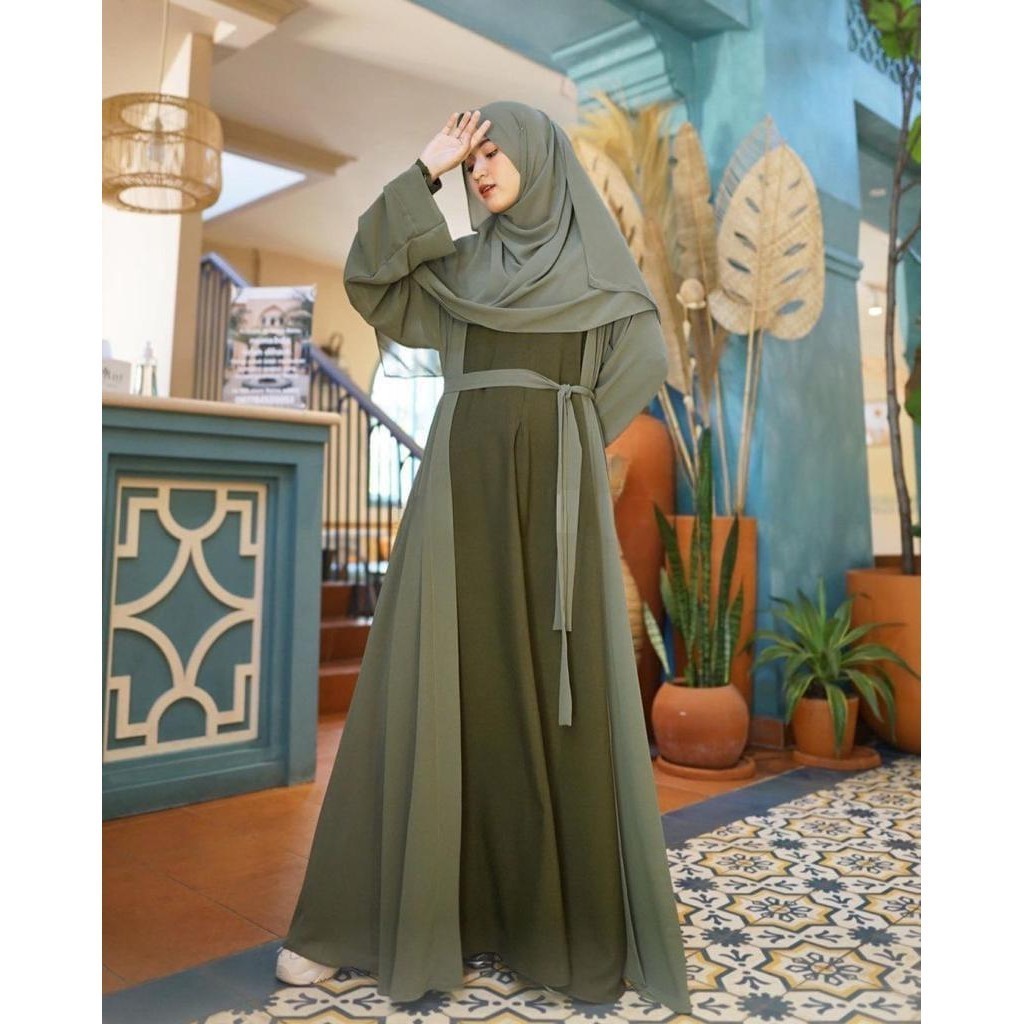 Femes Helwa Abaya Gamis Muslim Wanita Matt Ceruty Babydoll Full Puring OOTD Lebaran