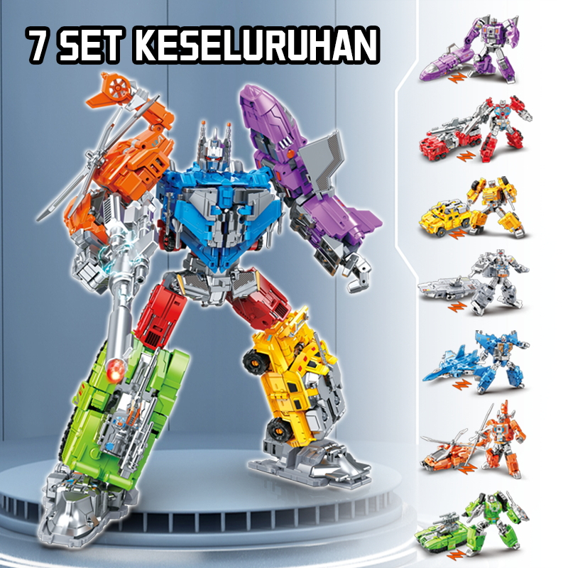 Habibi Mainan Robot Transformasi 7-in-1: Tank, Pesawat, Kapal Induk, Kombinasi Super untuk Anak