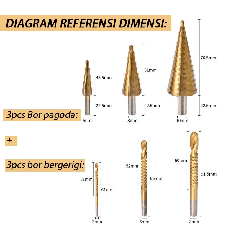 6Pcs Mata Bor Pagoda Baja Spiral Hss 12/20/32Mm Step Drill Bit Besi Kerucut Cone Drill Hole Saw Pembuka Lubang
