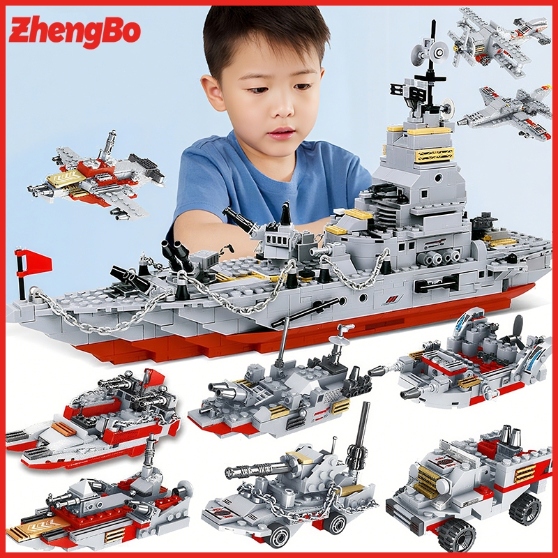 ZhengBo Mainan Robot Polisi Warship Blok Bangunan kapal induk Edukasi Mainan Anak Laki-laki