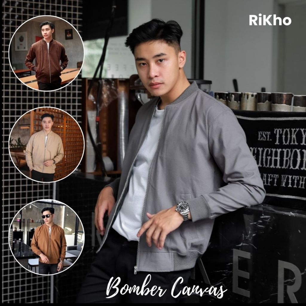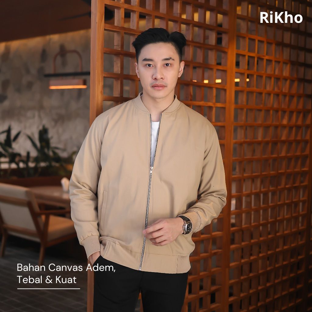 RIKHO Jaket Bomber Pria Canvas Premium | Vintage Keren Tebal Nyaman Tahan Angin | Basic Casual