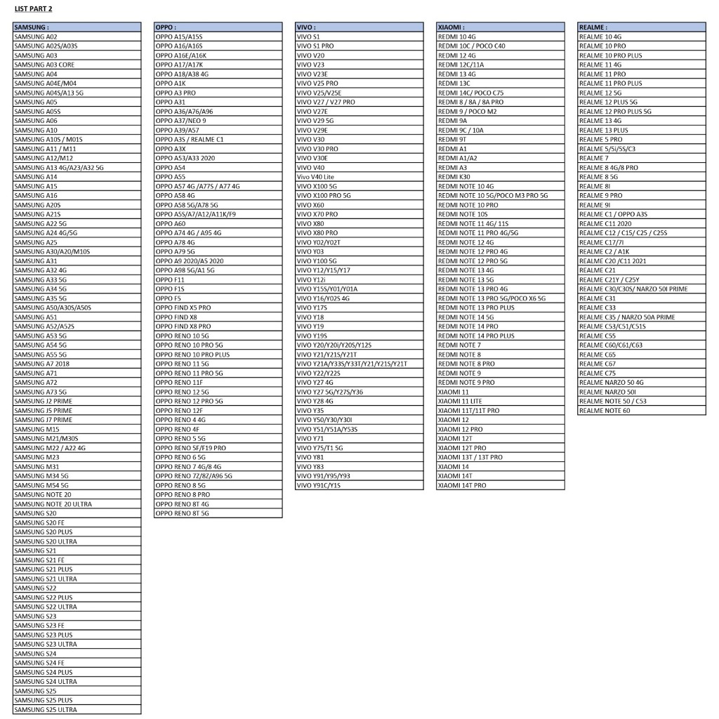 (TYPE LAIN DI CHAT), SAMSUNG A51, SAMSUNG A11/M11, SAMSUNG A12/M12, SAMSUNG A13 4G, SAMSUNG A14, SAMSUNG A15, SAMSUNG A20S, SAMSUNG A21S, SAMSUNG A22 5G