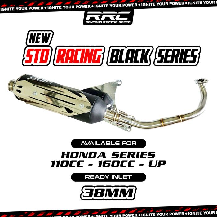 RRC RACING SPEED MUFFLER FULL PACKAGE KNALPOT STANDAR RACING BLACK SERIES VARIASI HONDA - BEAT DELUXE