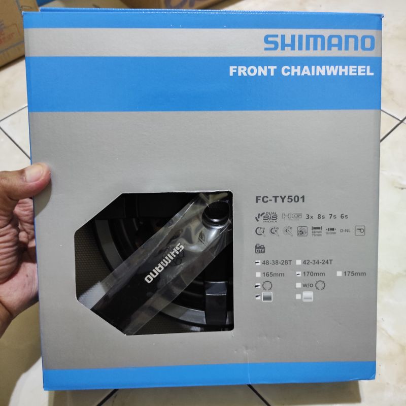 CRANK SEPEDA MTB SHIMANO FC-TY501 TRIPLE 48T 38T 28T PANJANG ARM 170MM BISA UNTUK 6 7 8 SPEED TY501