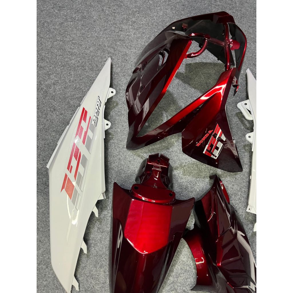 Cover full body halus honda beat fi warna dark red body putih plus striping vietnam