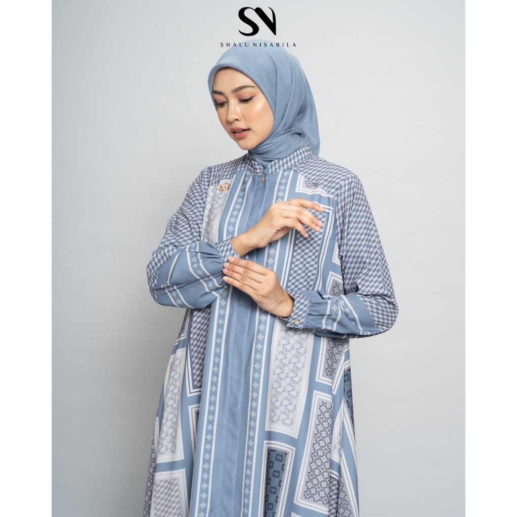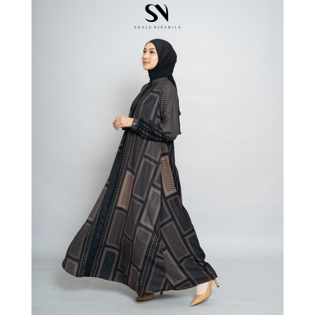 Shalu Nisabila - Lily Dress Monogram Printing Gamis Wanita Busui Friendly Baju Wanita Muslimah
