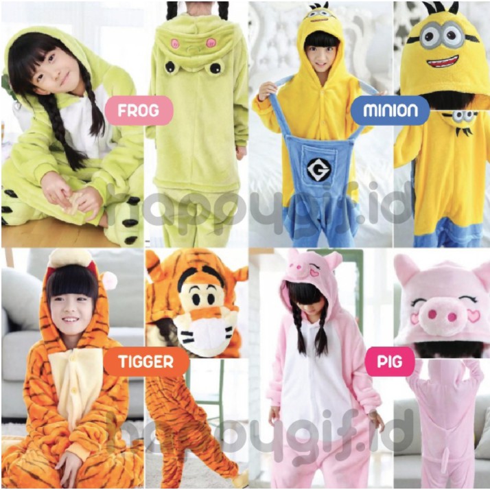 Baju Onesie Piyama Kostum Anak Karakter Tigger Cow Penguin Dll Kid