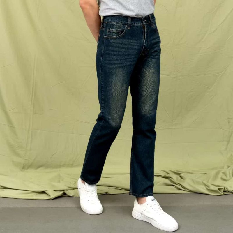 Celana Jeans Pria Tapered Reguler Standar Dovin Wisker wash
