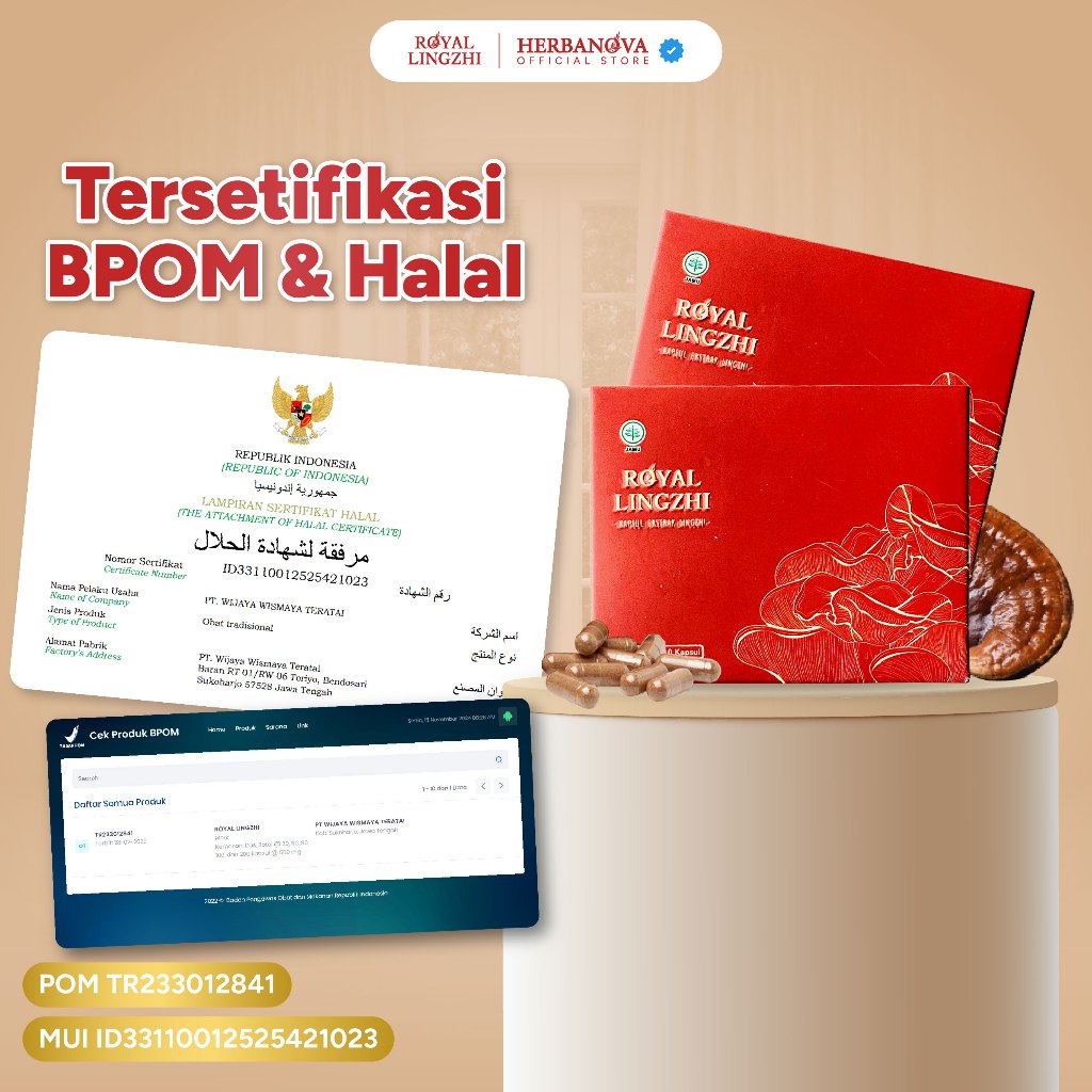 Royal Lingzhi Kapsul 3 Box Herbal Obat Benjolan Lipoma Ekstrak Jamur Lingzhi 500 mg Herbal Benjolan Leher Tiroid Tumor K