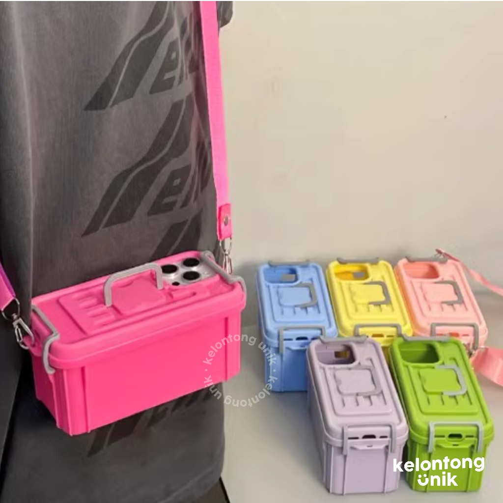 Kelontong Unik | Container Box Silicone Case With Crossbody Strap - Softcase/ Casing Hp For Iphone 11 12 13 14 15 Pro Pr