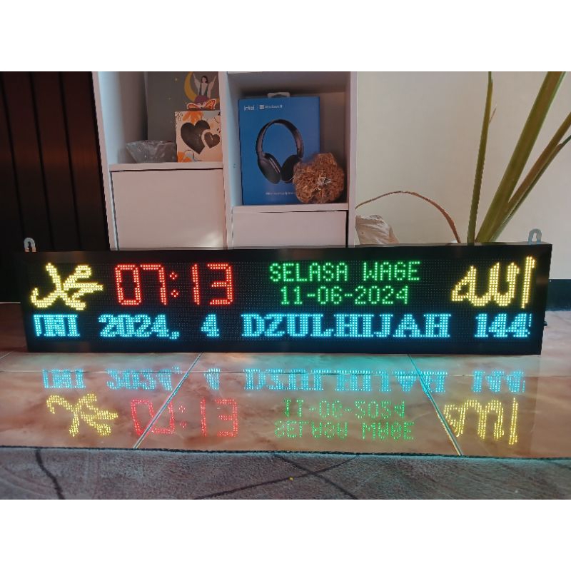 JAM WAKTU SHOLAT MASJID 20X100CM TIPE LAFADZ / JADWAL SHOLAT DIGITAL MUSHOLLA 20X100 CM WIFI RGB FULL COLOR