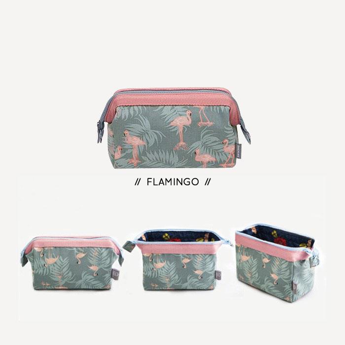 83 Pouch Kosmetik/Makeup Anti Air Waterproof Motif Flamingo, Bunga Hitam Kanvas - Coklat Bunga