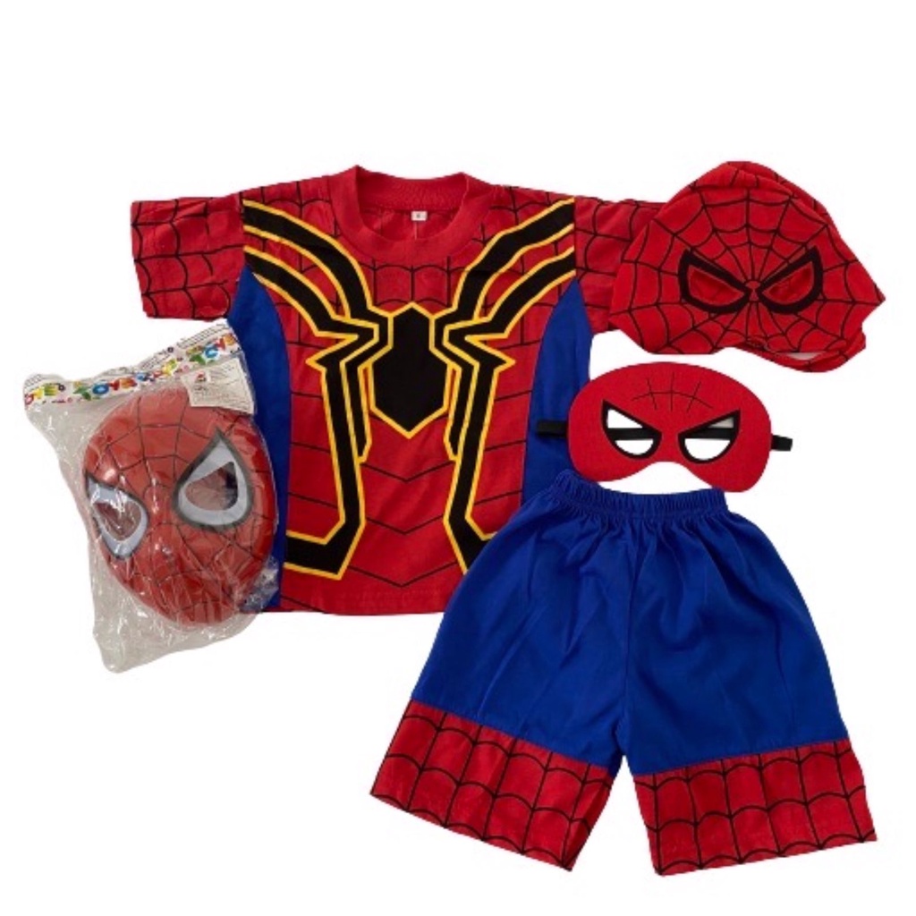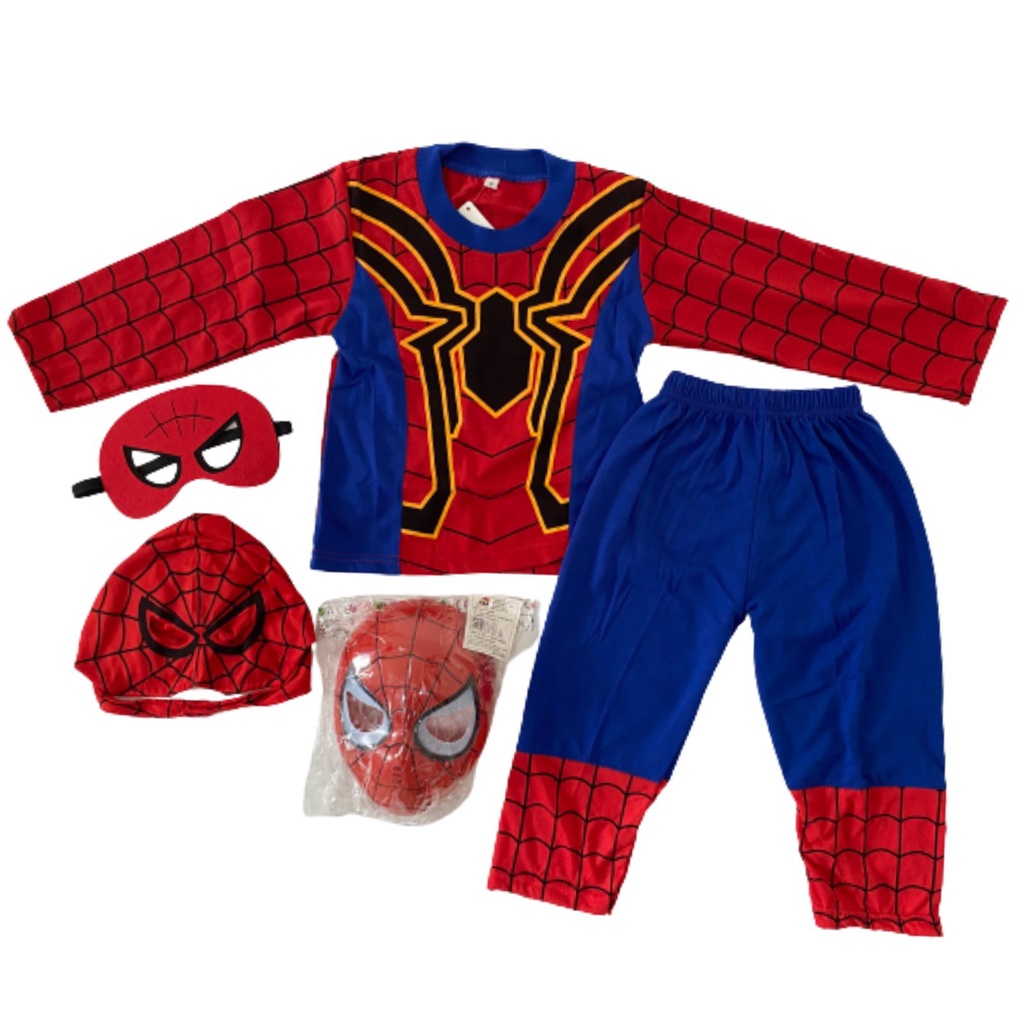 Setelan Anak Karakter Spidermen 3In1 Dapat Topeng Kain Plastik Dan Flanel
