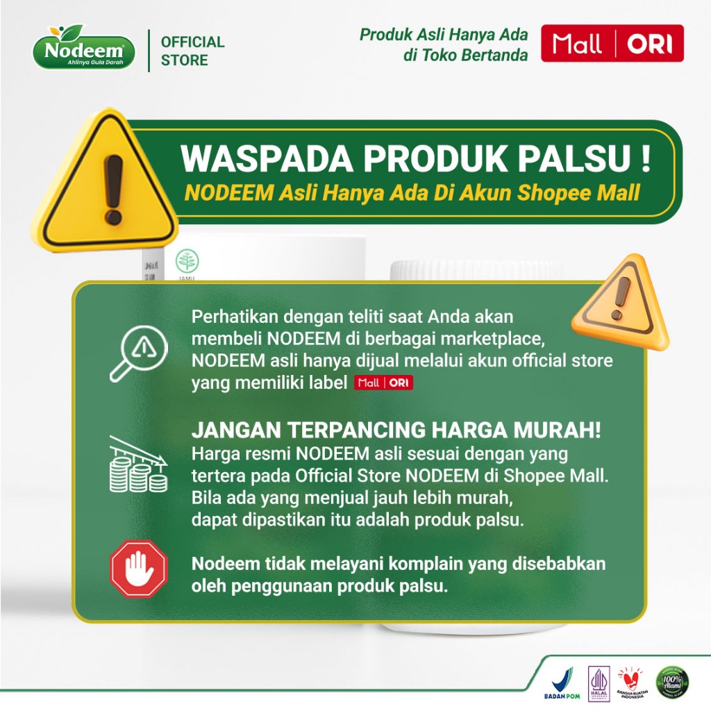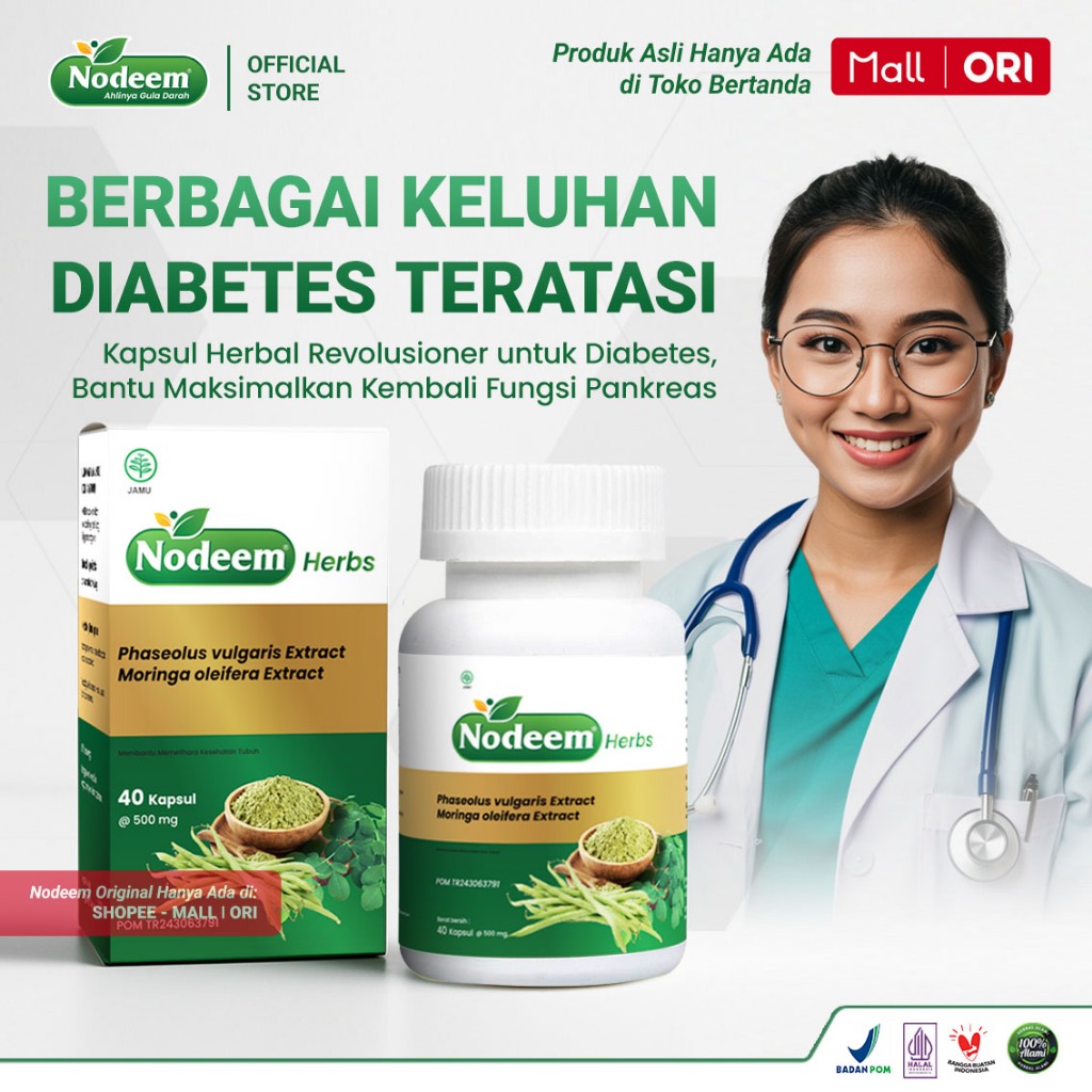 Paket 2 Botol - Kapsul Herbal Diabetes Bantu Menstabilkan Gula Darah Diabetesi - NODEEM Glukoran