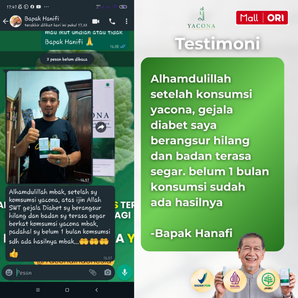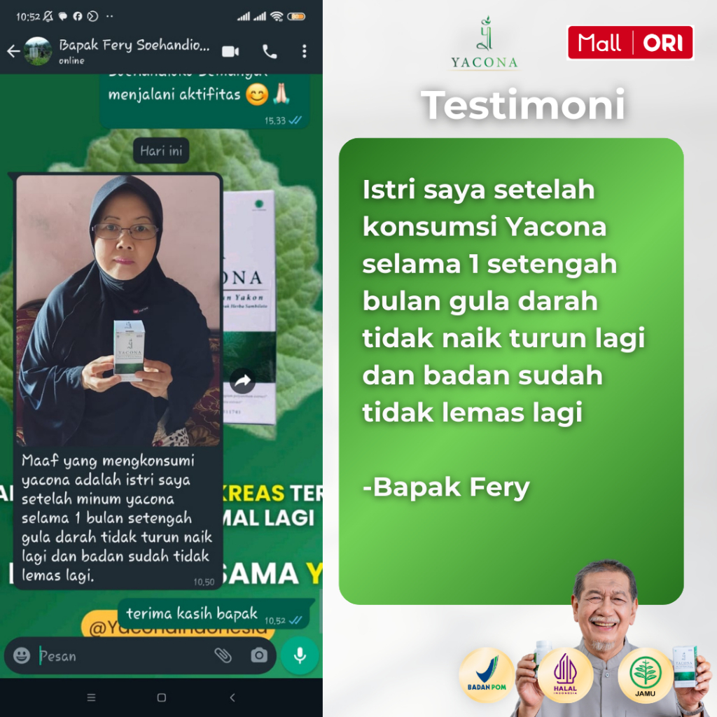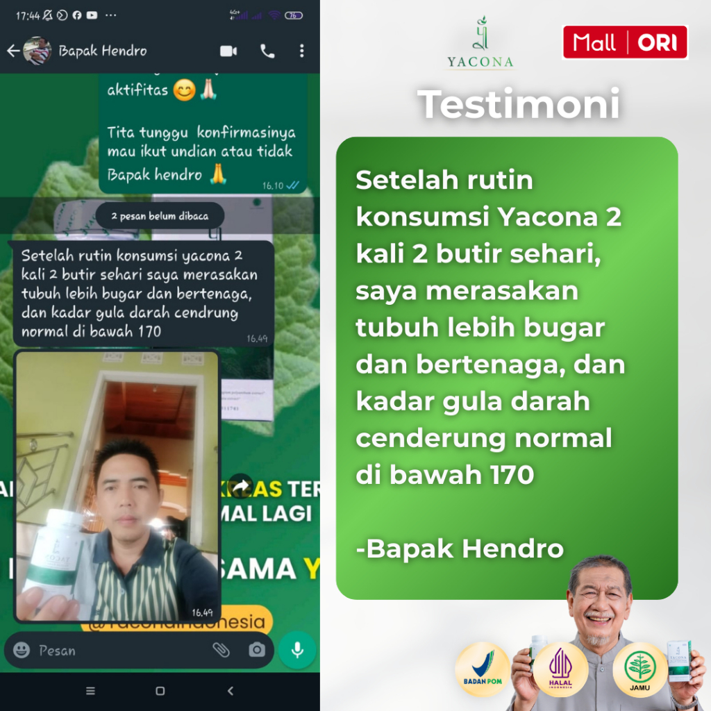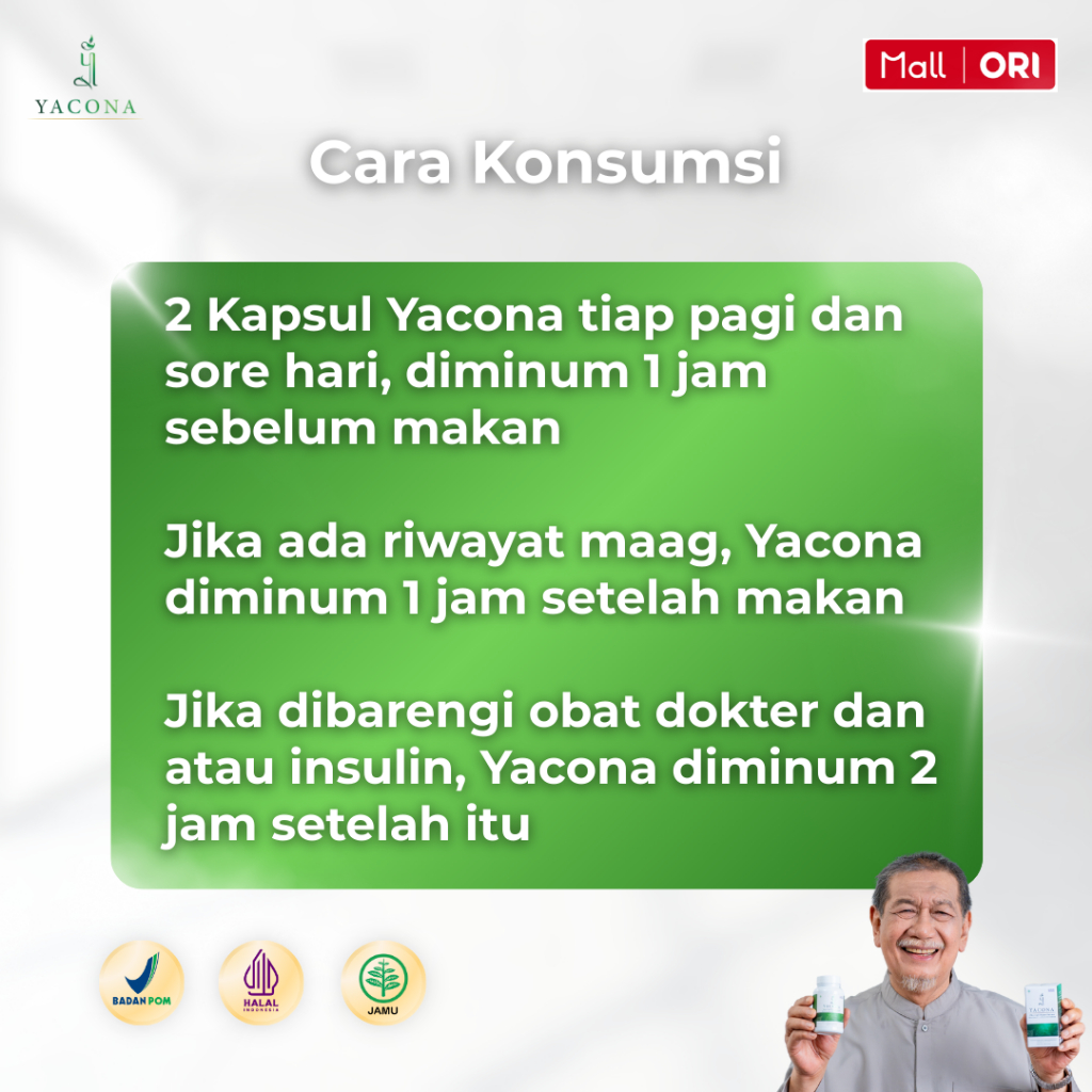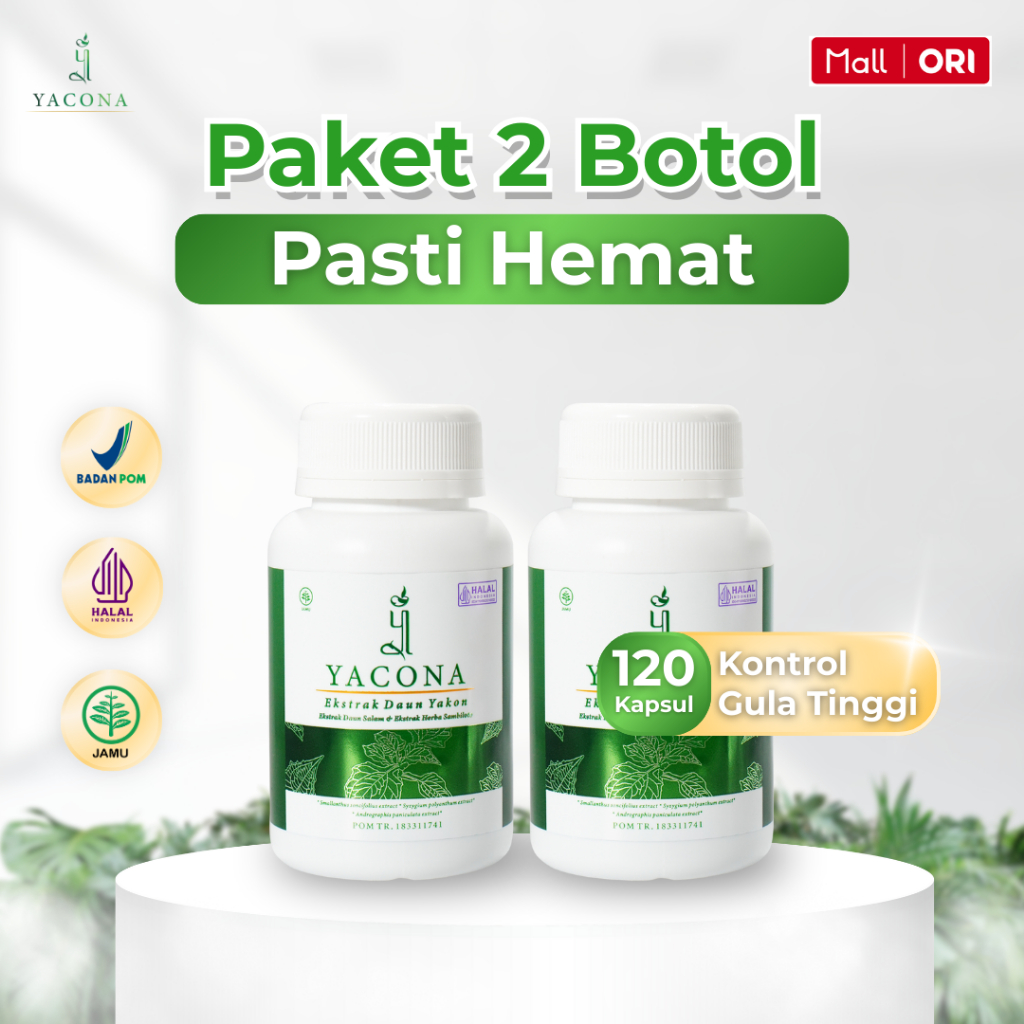 Yacona 2 Botol Obat Herbal Diabetes Stabilkan Gula Darah & Memperbaiki Sel Beta Pankreas 120 Kapsul