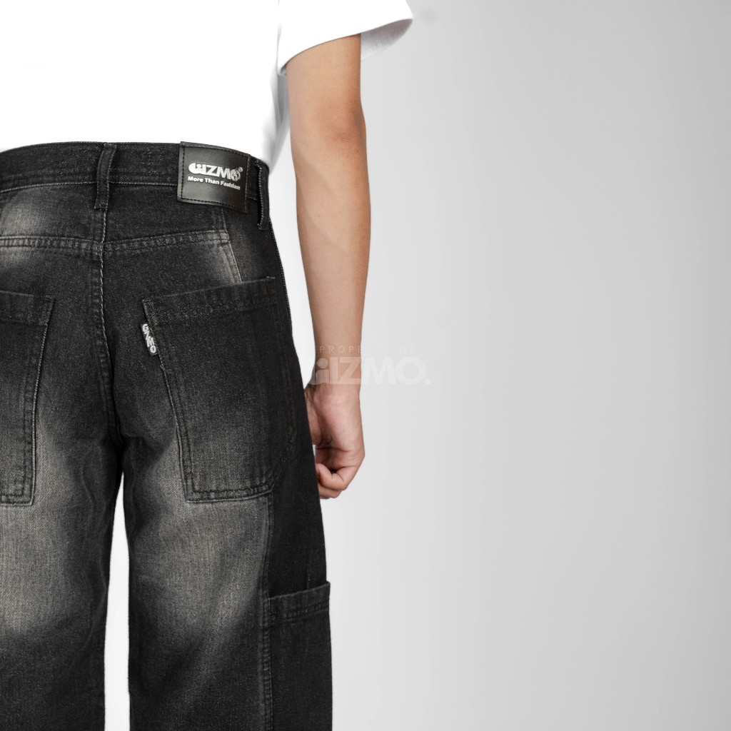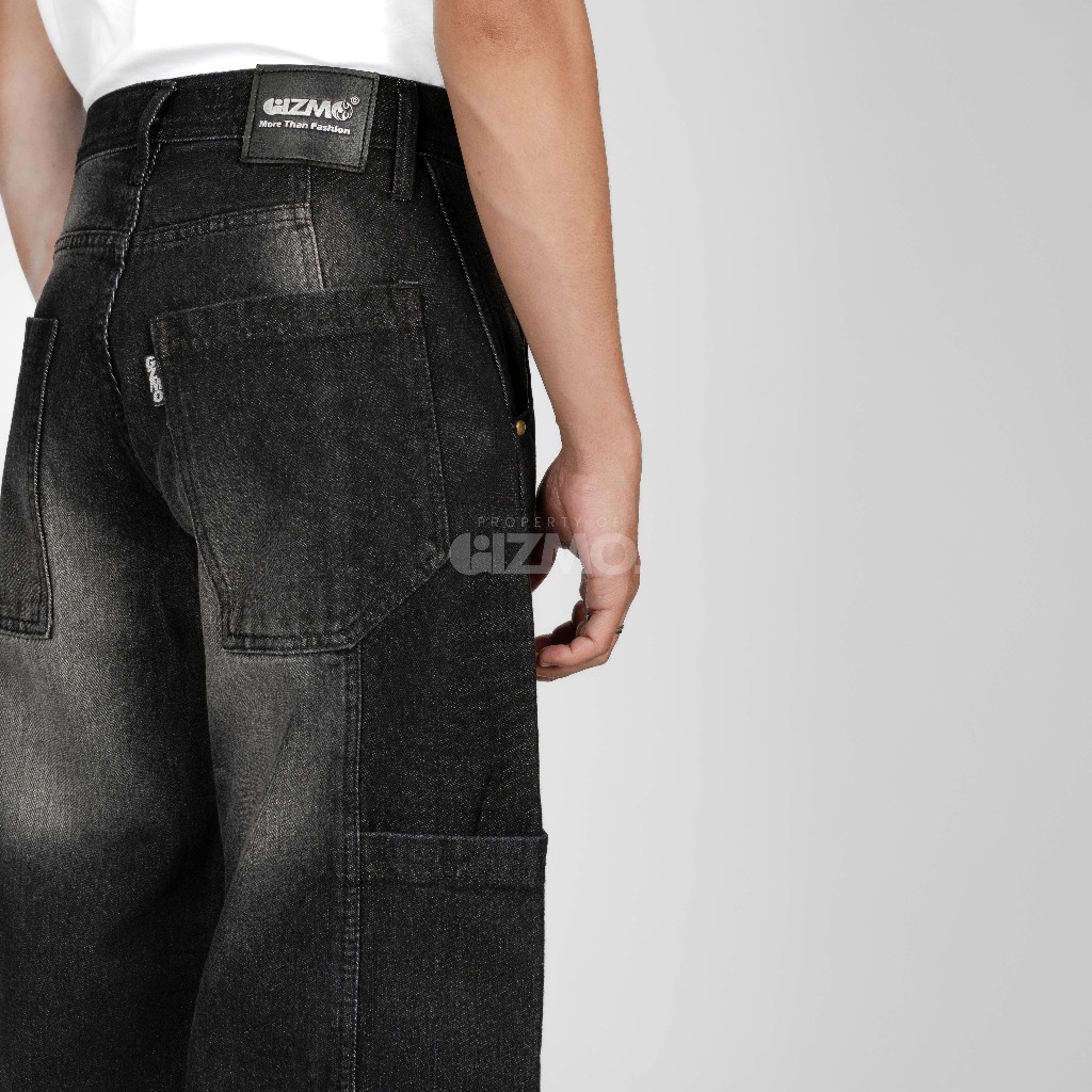 Gizmo - Baggy Jeans Pecah Pola - Origami Flow Black Abyss - Streetwear Baggy Style- Lebar Gombrong Skena - Celana Denim