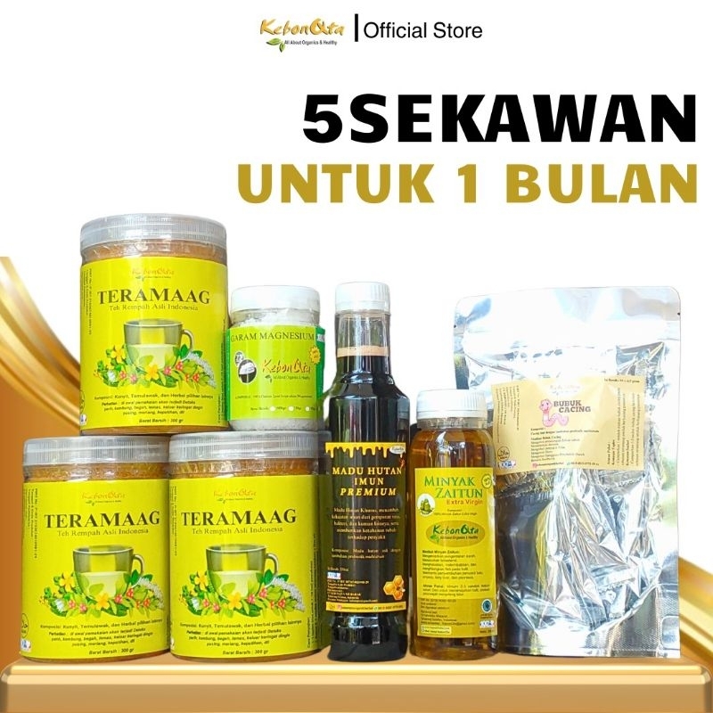 PAKET 5 SEKAWAN KOMPLIT UNTUK MAAG, GERD, ASAM LAMBUNG HERBAL ALAMI ORGANIK KEBONQTA