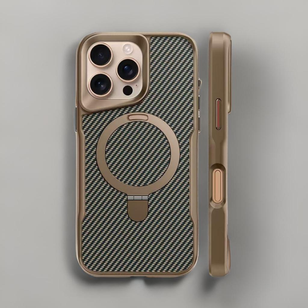 New Premium Case Mag Safe + Free Ring Lens Camera Case Carbon Fiber Patern Bracket Compatible For 12 13 14 15 Pro Max