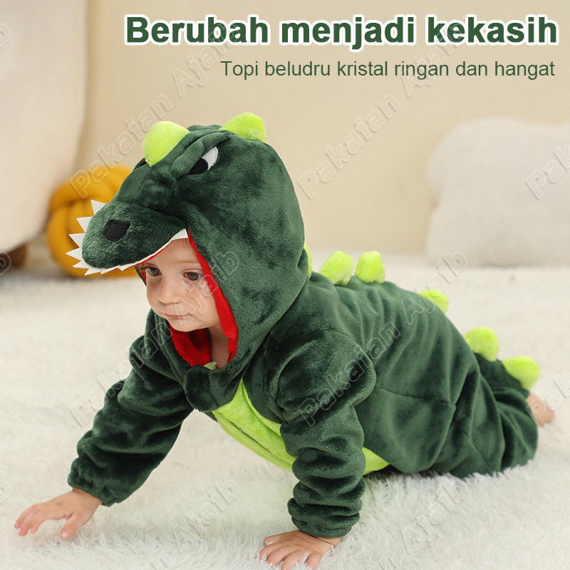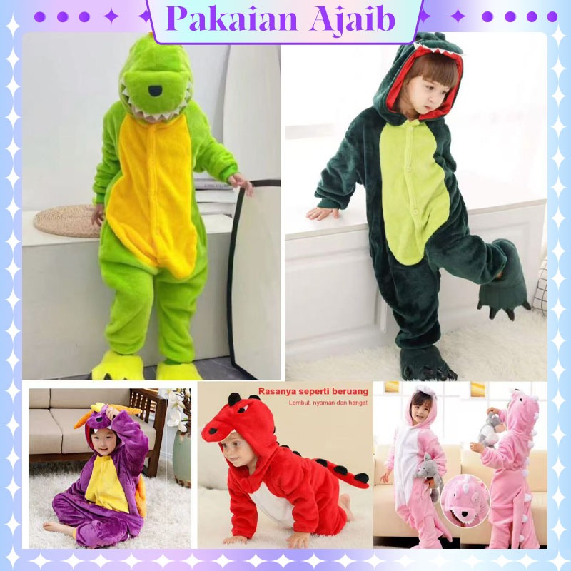 Pakaian Ajaib Baju Kostum Dinosaur Onesie Anak Flanel Piyama Kostum Permainan Peran Onesie Termasuk Sepatu + Sarung Tang