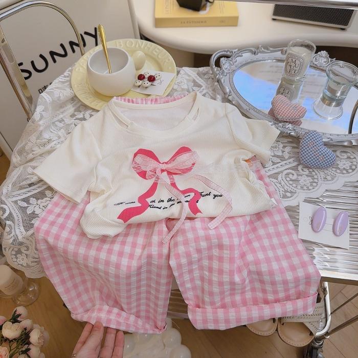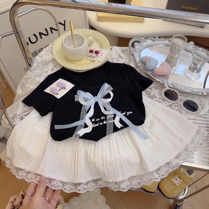 Enchanted Princess Kaos Anak Perempuan Lengan Pendek Detail Pita Lace Warna Netral Nyaman Harian Lucu Ukuran 100-150 2