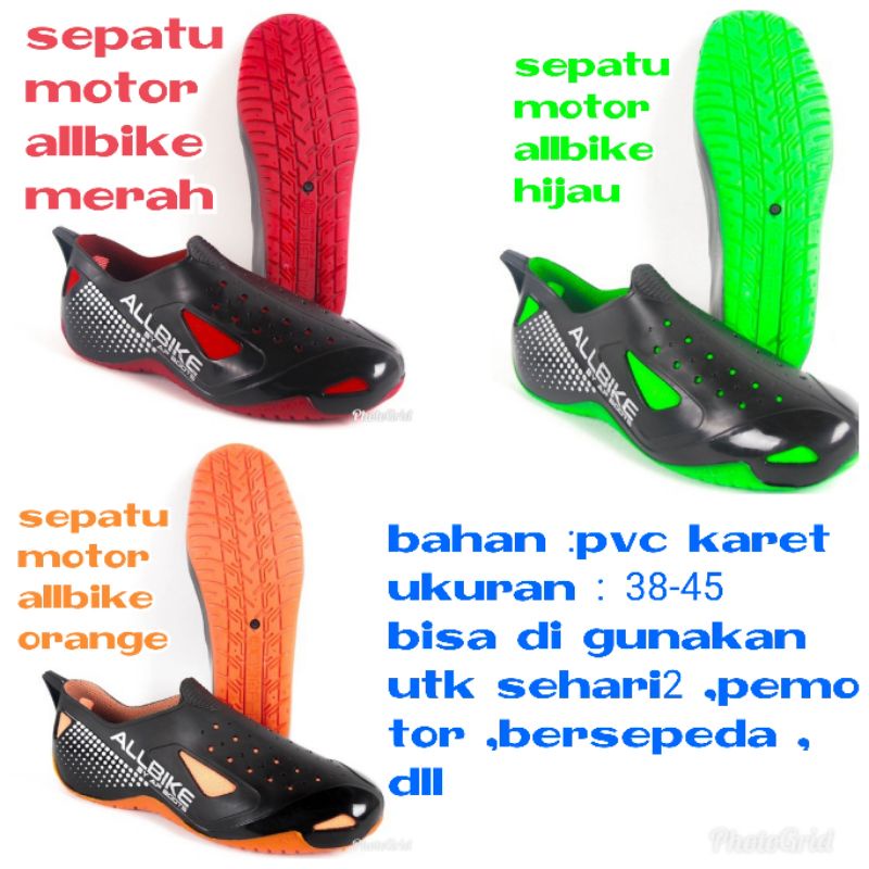 Sepatu Karet Allbike Ap Boots Motor Bersepeda Warna Merah Hijau Orange Size 38-45 Pvc Karet Anti Slip