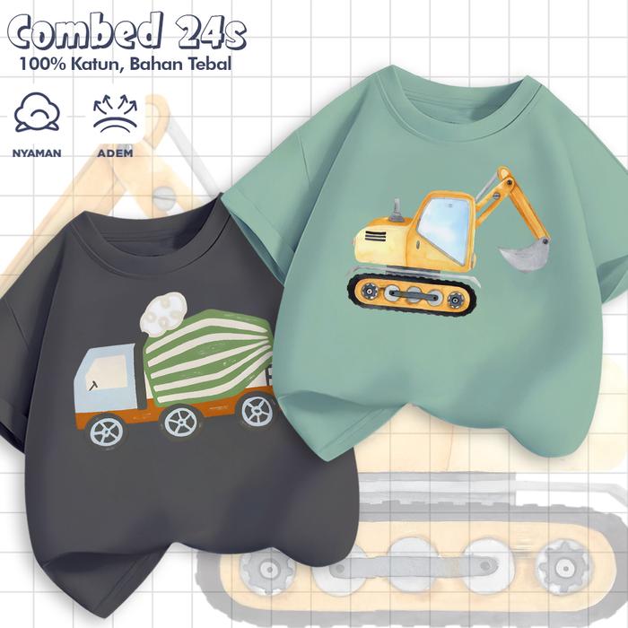 Olibaba - Kaos Anak Premium 1-8 Tahun / 100 PERSEN Katun Tebal 24S / Baju Anak Laki Laki Perempuan - B28 - Ok0455-Abu Tua, S