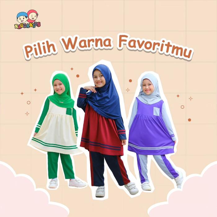 Setelan Olahraga Anak Perempuan Raggakids - Baju Olahraga - Setelan Maroon Tanpa Jilbab, S 3-4Th
