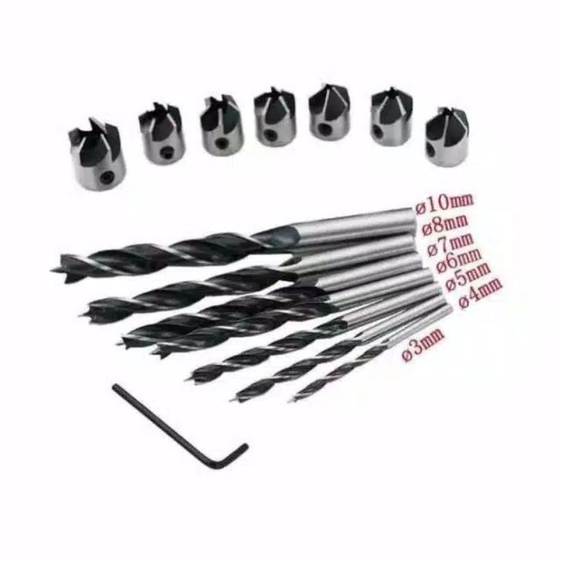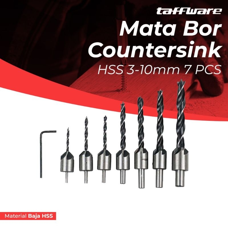 Mata Bor Drill Bit 7Pcs Hitam Countersink Baja Hss 3-10Mm