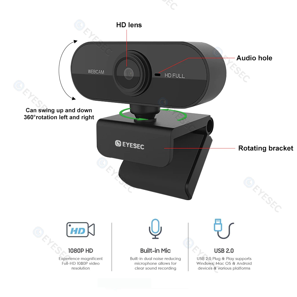 EYESEC Webcam 1080P Laptop USB Kamera PC With Mic Camera Webcast Live Zoom Google Meeting Camera Broadcast Video