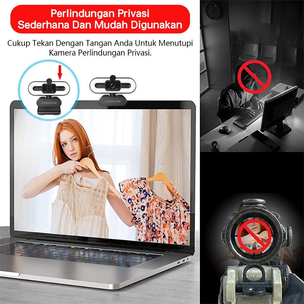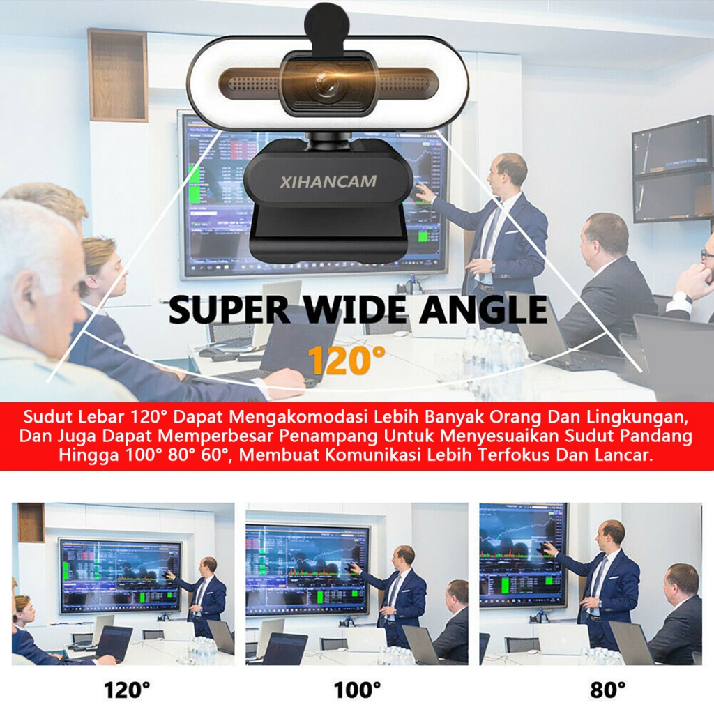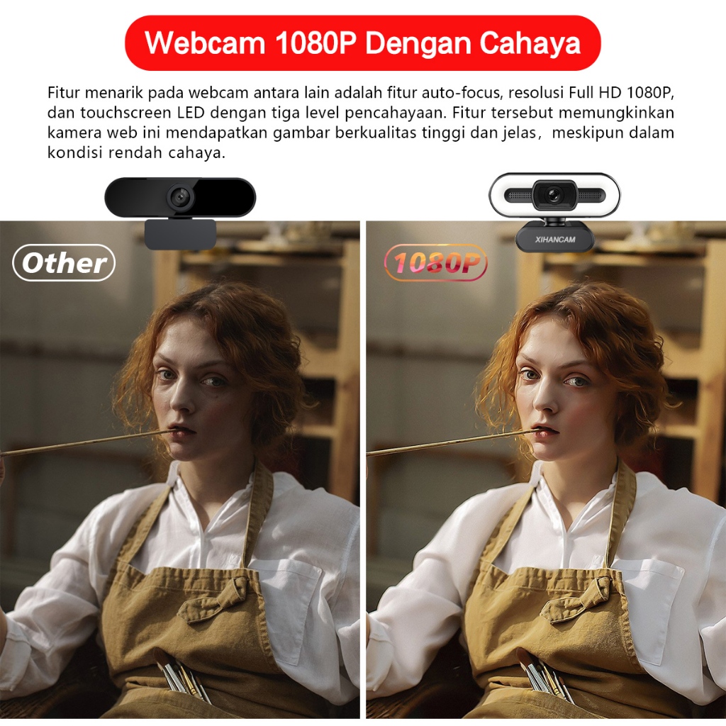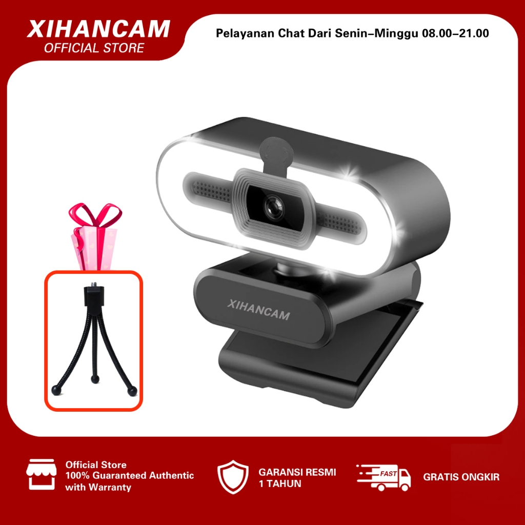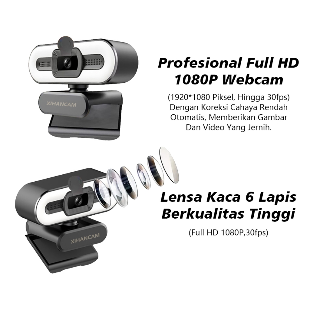 XIHANCAM 3Led Ring Light Webcam Laptop 1080P USB Kamera Webcam PC Live Streaming With Mic Untuk Zoom