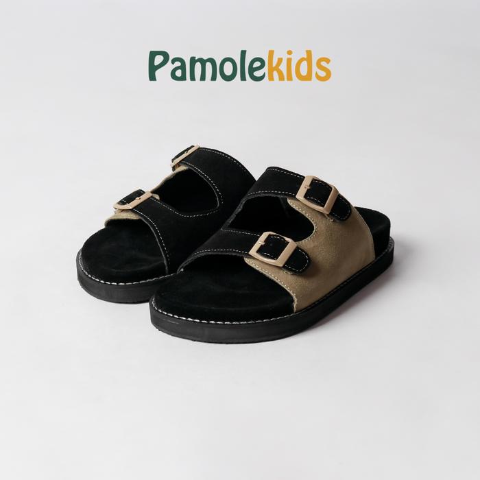 Pamolekids Sandal Anak Perempuan Laki Laki Kekinian Sendal Anak - Floral Series - Hitam Cream, 26