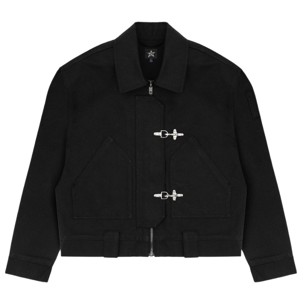 Sai - Fireman Clasps Style Work Jackets Denim Boxy Outer Jacket Denim