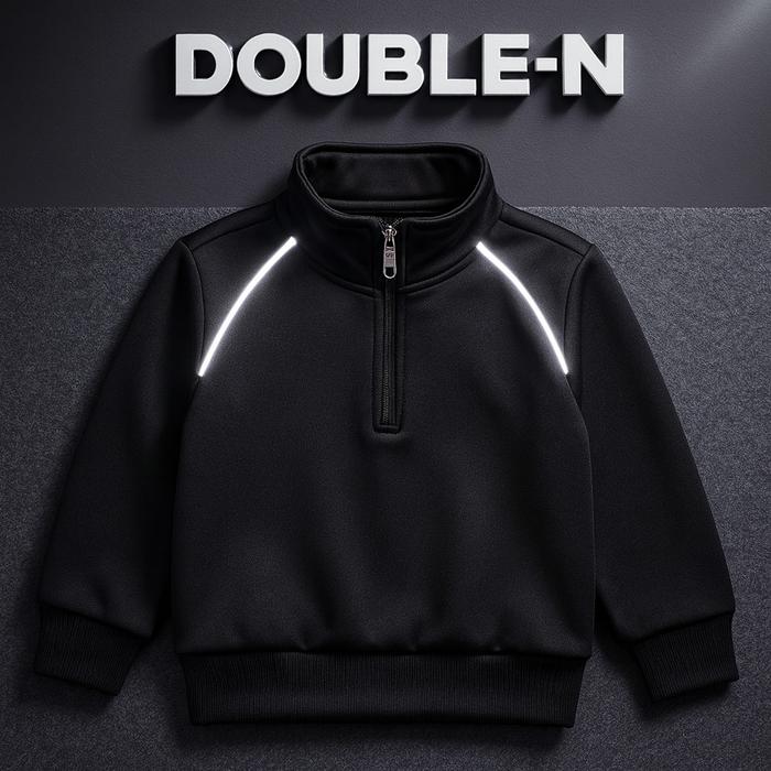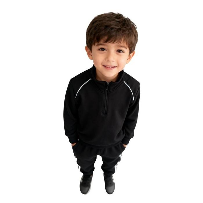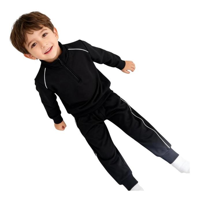 Setelan Sweater Garis Reflektif Menyala Style Sporty Elegan Anak Unisex 2-12 Tahun - Setelan Hitam, M 2-3 Tahun 10-17Kg