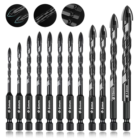 Mata Bor Beton Keramik Kaca Set Komplit 12 Pcs Mata Bor Multifungsi Untuk Granit Keramik Beton Kaca Bentuk Tombak Multif