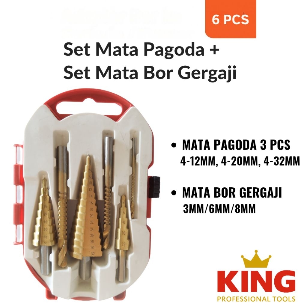Set Mata Bor Pagoda 6Pcs 4-12Mm 4-20Mm 4-32Mm + Mata Bor Gergaji Potong 3Mm 6Mm 8Mm – Step Drill Bit & Hole Saw Cutter