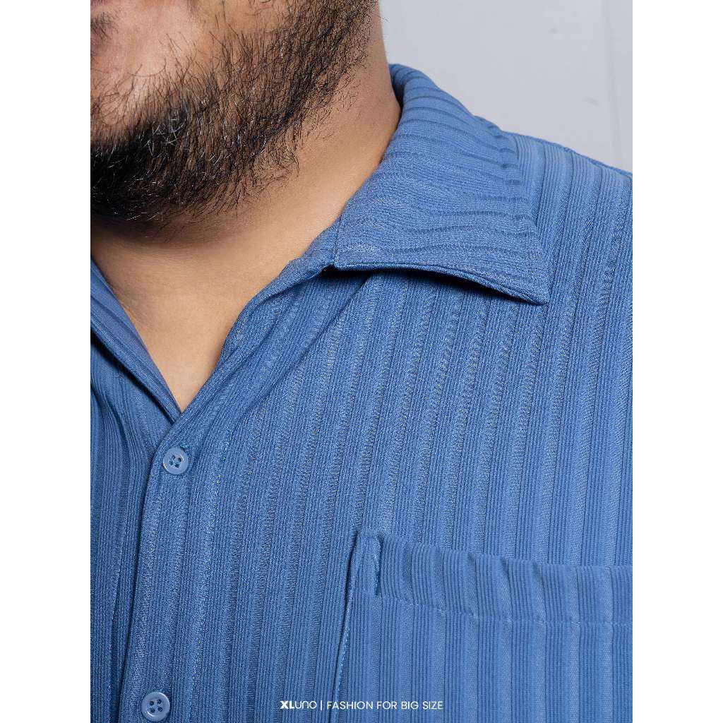 Xluno Bill Boxy Shirt Denim Kemeja Boxy Pria Jumbo Knit Big Size Lengan Pendek