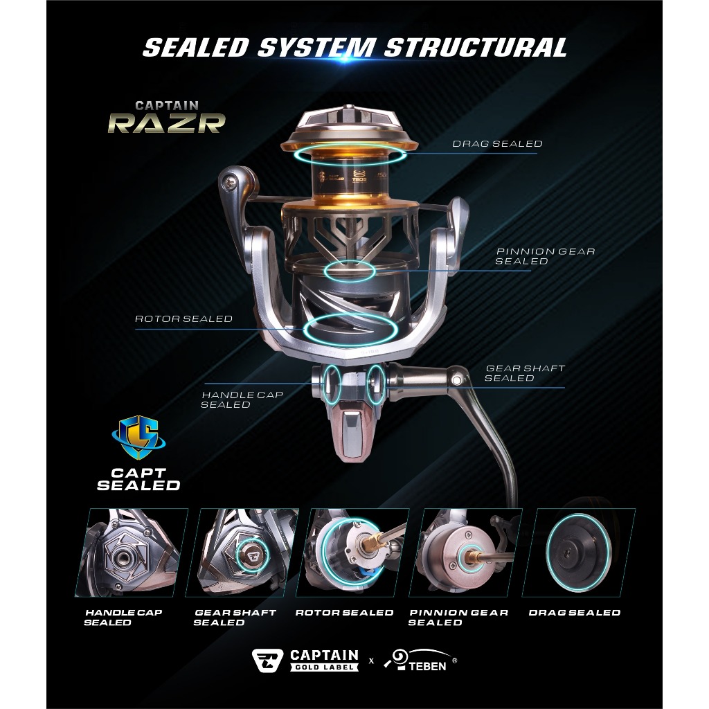 Reel Captain Razr Gold Label X Teben, 2000, 3000, 6000 Max Drag 10,10, 12Kg