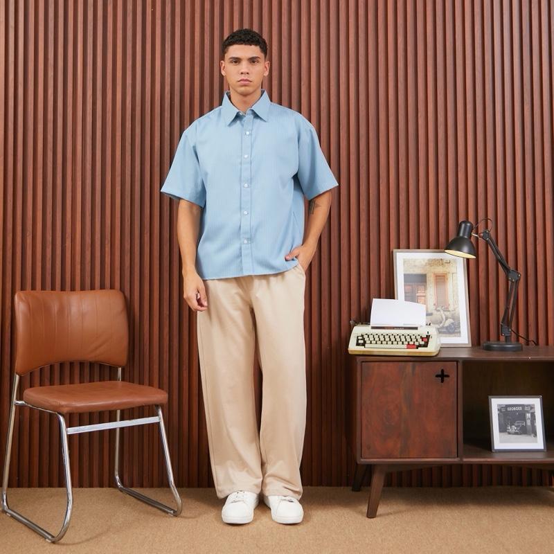 Haibro - Kemeja Mino Stripe Boxy Oversized White
