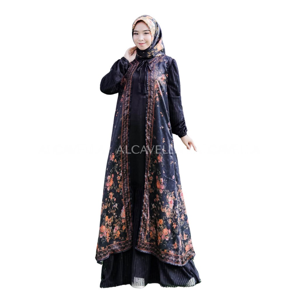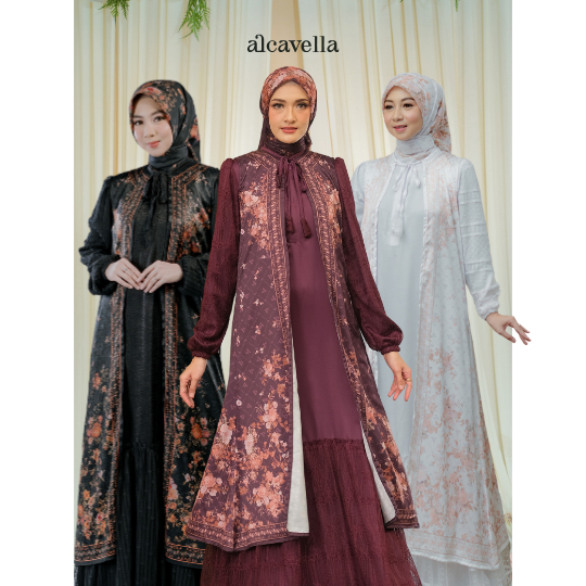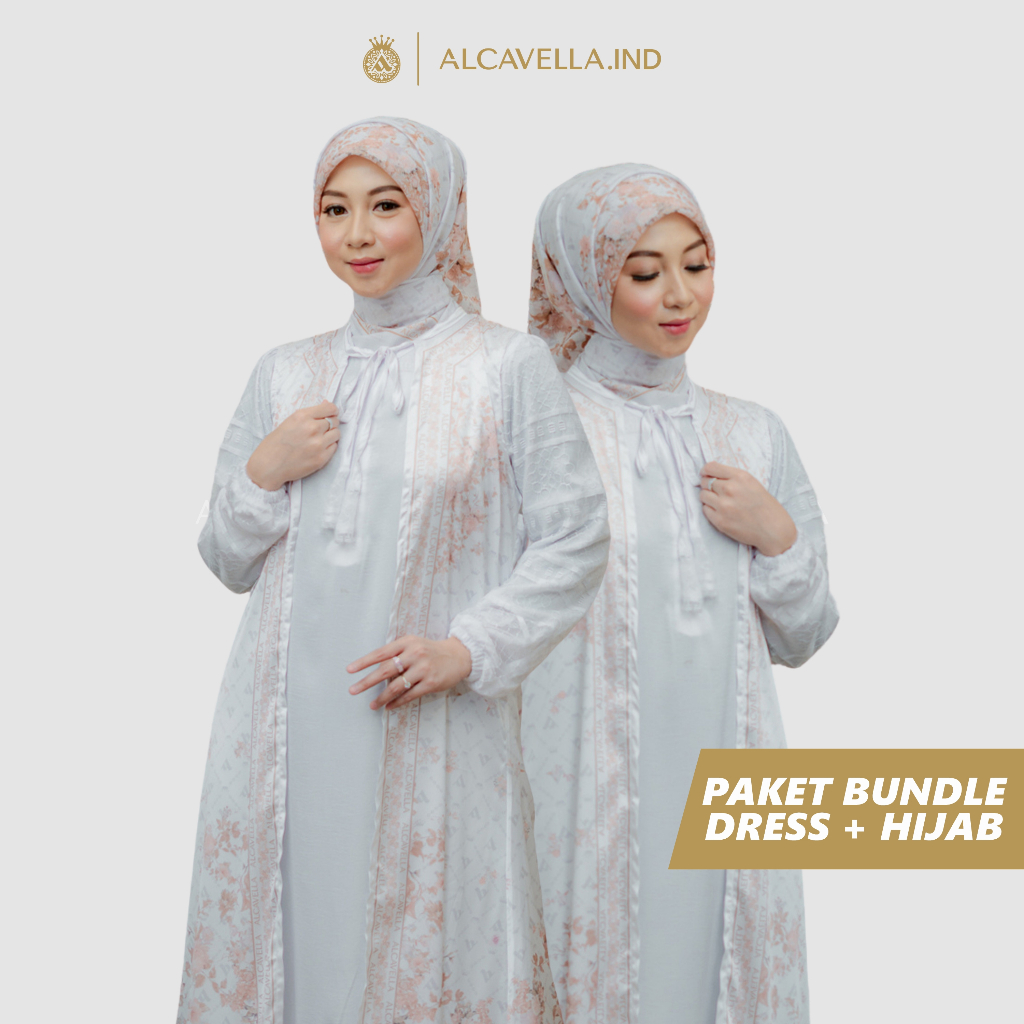 ALCAVELLA - Floria Dress Terlaris | Set Hijab Segi empat Gamis Wanita Dress Muslim Outer Ledysilk Plisket Busui Friendly