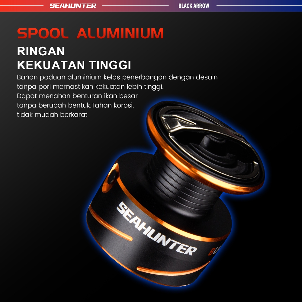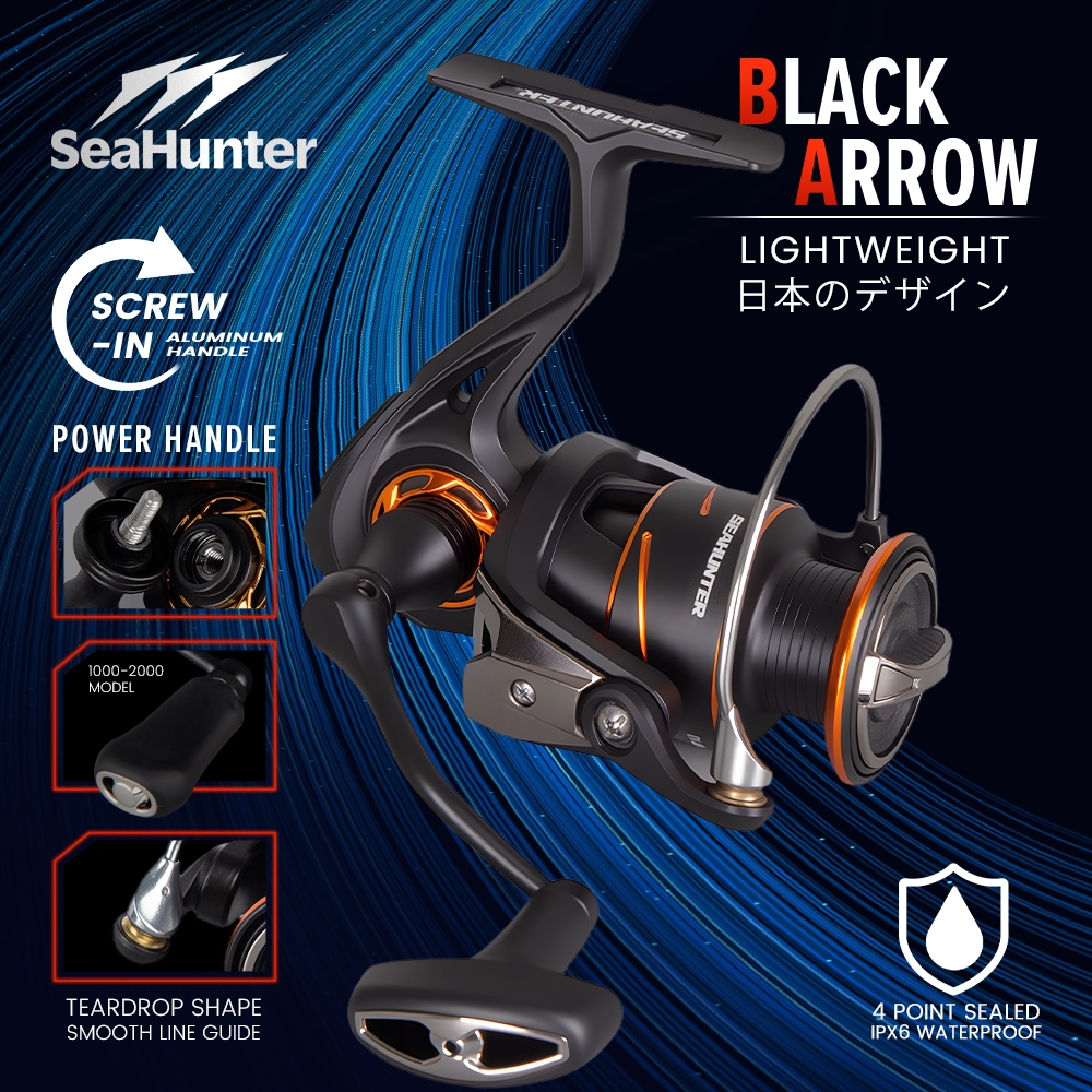 Seahunter Black Arrow Reel Pancing Power Handle Spinning Reel,Hendel Reel Ukuran 1000-3000,Kumparan Dangkal A