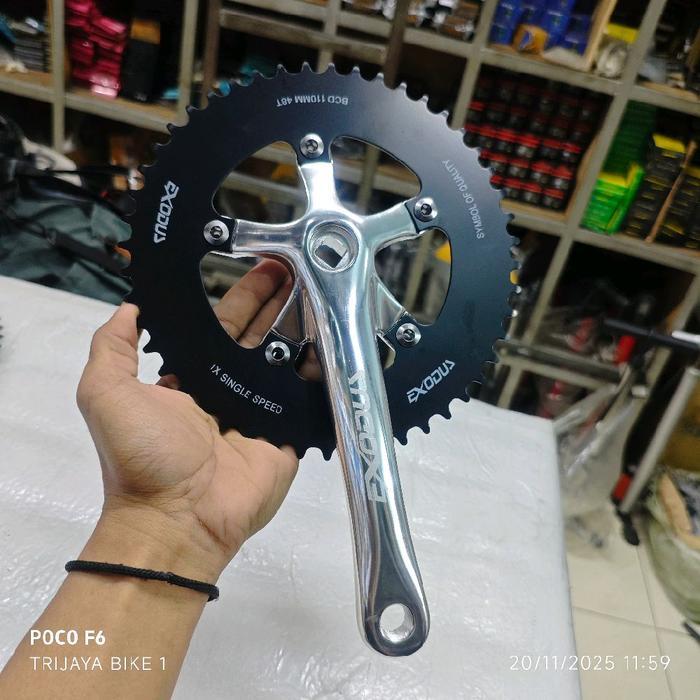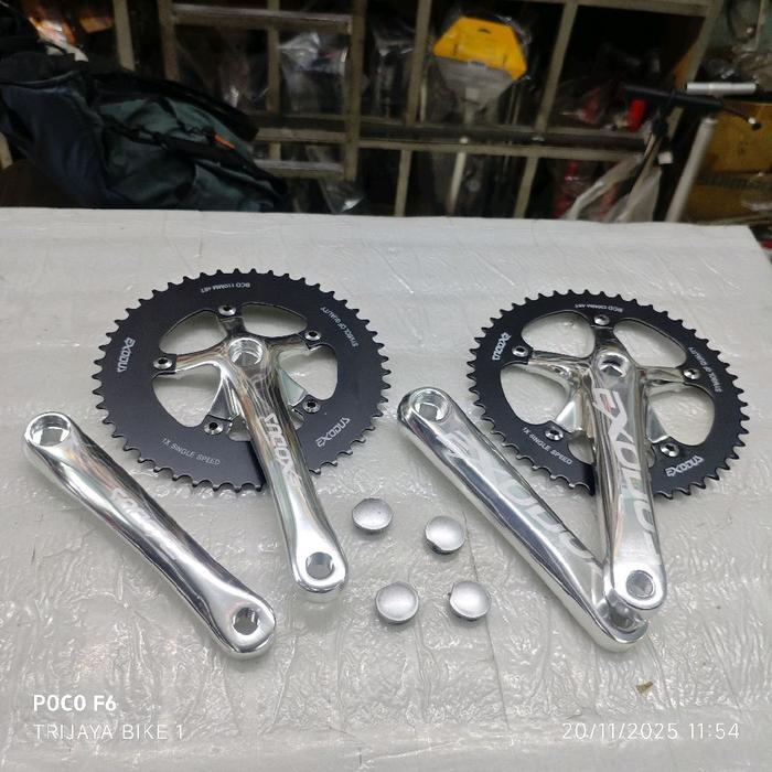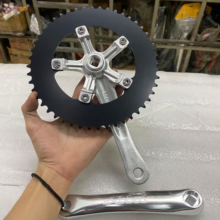 Crank Single Speed 48T EXODUS BCD 110 130 5 Baut Arm 170mm Fixie MTB Federal Lipat BB Kotak Alloy Arm Silver Chrome Chai