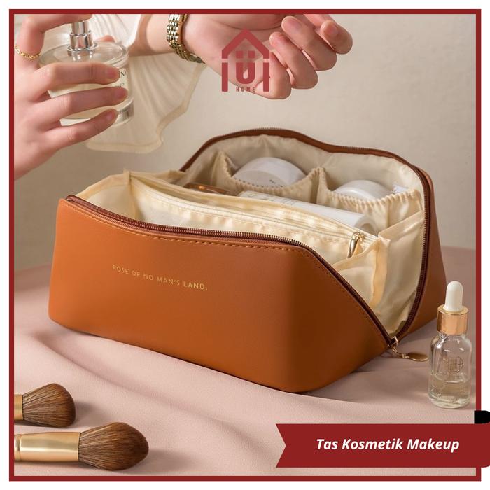 Uniso - Tas Kosmetik Pouch Makeup Washbag Tas Alat Makeup Travel Tas Penyimpanan Kosmetik Serbaguna - Coklat