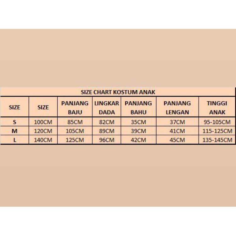 100CM ANAK, 120CM ANAK, 130CM ANAK, 140CM ANAK, 110CM ANAK