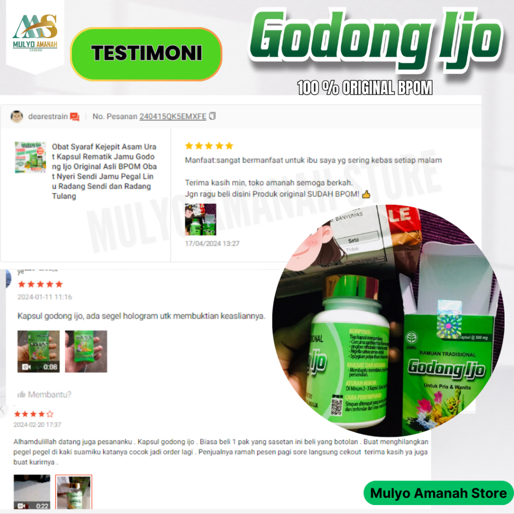 PAKET 4 BOTOL Obat Saraf Kejepit Herbal Jamu Asam Urat Pegal Linu Kapsul Godong Ijoo Original BPOM